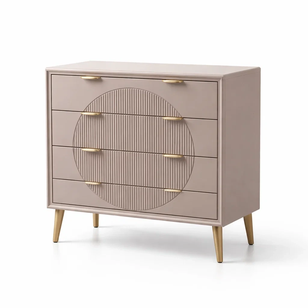 Kommode holzfurnier textilschubladen metallrahmen weiß