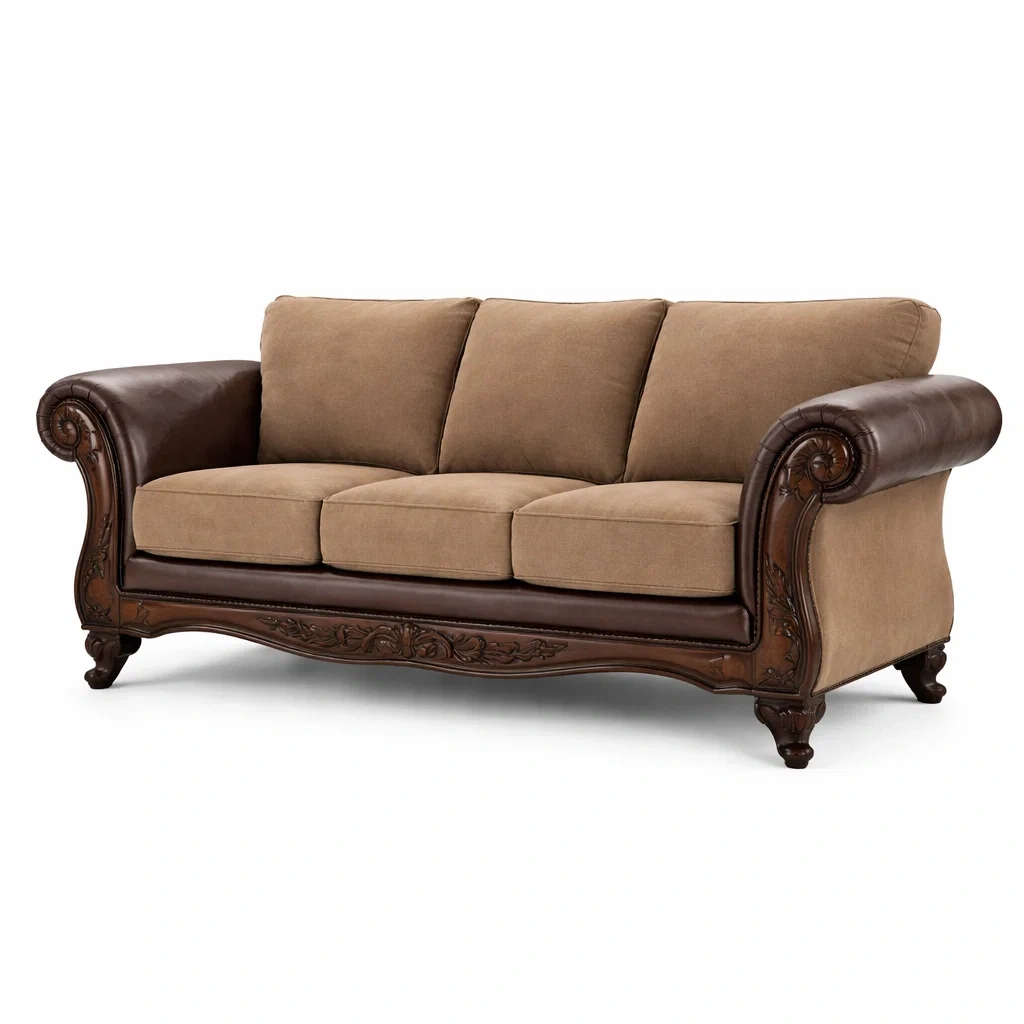 Material: Mikrofaserstoff, Massivholzrahmen, PU-Leder
